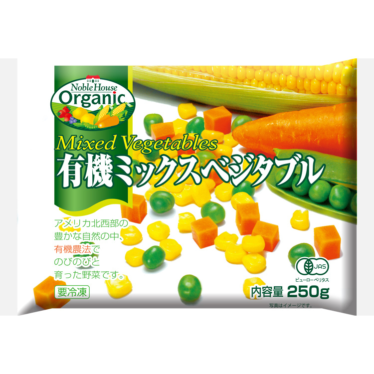 ノーブルハウスオーガニック 有機JAS 冷凍ミックスベジタブル250g 3種ミックス(ダイスカットにんじん コーン グリーンピース) フーデム