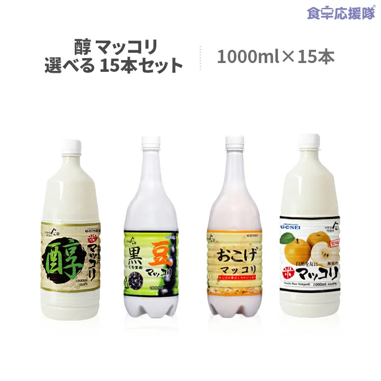 醇 マッコリ15本セット お好きなセット選択「米マッコリ、黒豆マッコリ、梨マッコリ、おこげマッコリ」 大容量4 1000mlが15本!