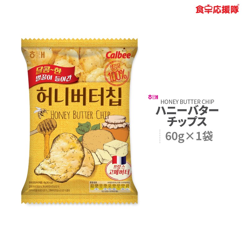 ■原材料名: じゃがいも(韓国産)、混合食用油(パームオルレイン油、ひまわり油、トコフェロール)、複合調味食品(ハニーバター味シーズニング、結晶果糖、白砂糖、精製塩、脱脂粉乳、バター混合粉末、イーストイクスレットパウダーYe3、天然香辛料、アカシア蜂蜜粉末、ゴメバター(フランス産)
