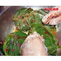 ■商品内容:シソの葉に見た目がよく似たエゴマの葉(ケンニッ)で漬けたキムチ。