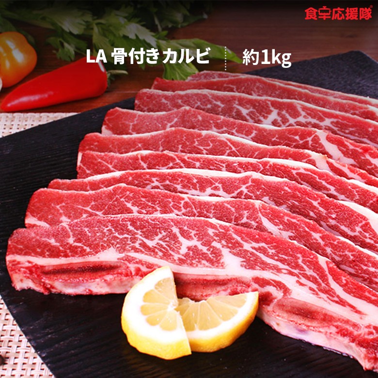 縦切り骨付き牛カルビ 1kg 牛カルビ 冷凍 アメリカ産 LAカルビ