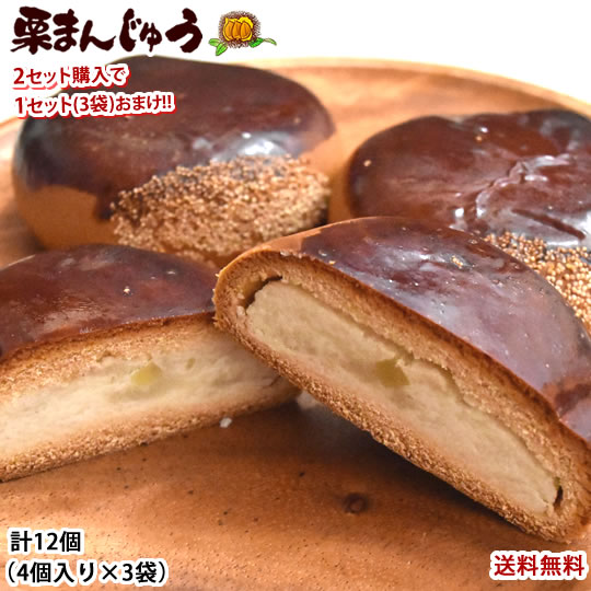 栗まんじゅう 饅頭 送料無料 計12個(4個×3袋) 2セット購入で1セットおまけ 和菓子 栗 まんじゅう スイーツ