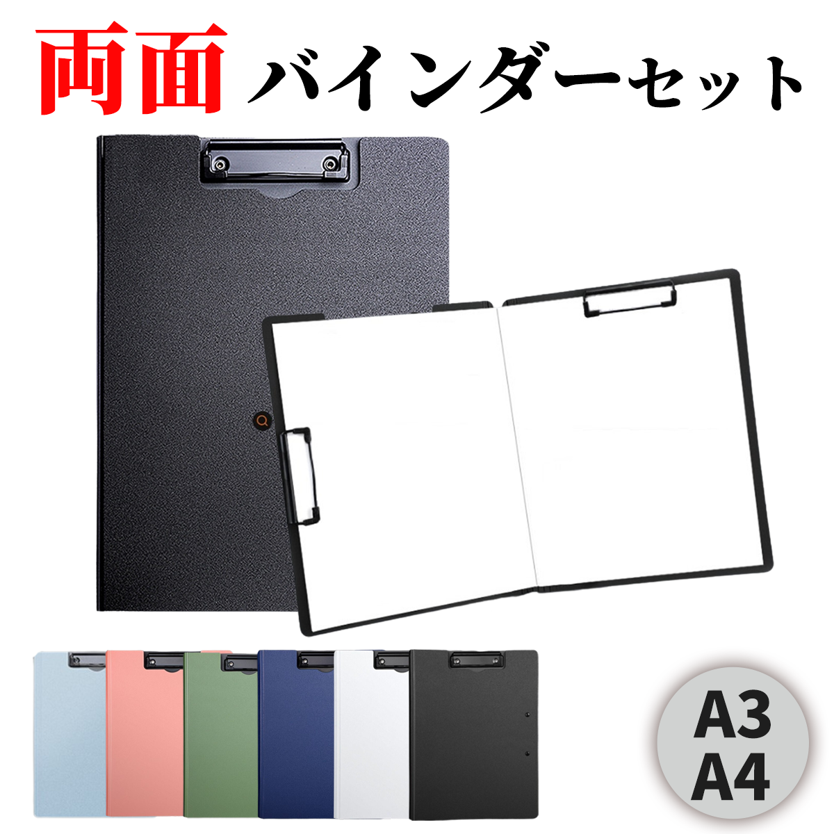 バインダー 2枚セット クリップボード A3 A4 A5 2つ折り ファイル フォルダ 薄い ダブルクリップ 事務用品 オフィス用品