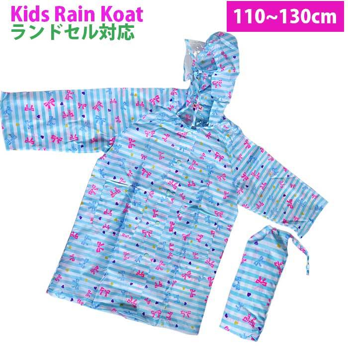 子供用 レインコート ランドセル対応 キッズ 女の子 リボン柄 かわいい 反射テープ付 収納袋付 110cm 120cm 130cm