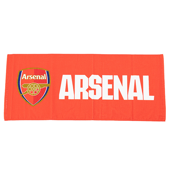 プレミアリーグ アーセナルFCのクラブロゴとエンブレムがデザインされたフェイスタオル。