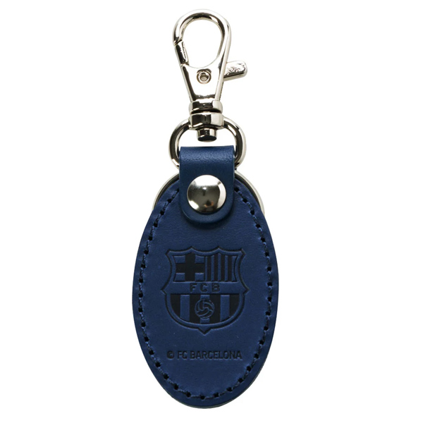 ラ・リーガ FCバルセロナのクラブのエンブレムが型押し加工された本革レザーキーホルダー。