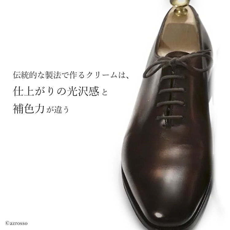| カラー:ブラック/ニュートラル/ダークブラウン/ミディアムブラウン/ライトブラウン/コニャック/ロンドンタン/ベージュ/バーガンディ/レッド/グリーン/ネイビー/グレー/ホワイト 容量:50ml 本場欧州の伝統的レシピで作られた本格派靴クリーム。 革靴に栄養と潤い、柔軟性を与え靴を長持ちさせる靴クリームです。 クリームはソフトでシルキータッチな伸びと優れた浸透性、光沢感を得ることができます。 補色力も抜群な栄養クリーム(乳化性タイプ)です。 |