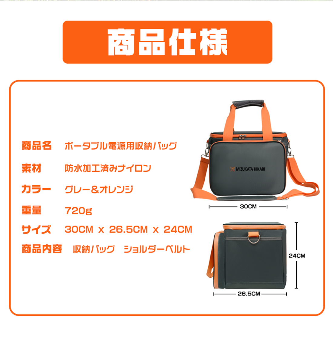 【ほかにも使いどころいっぱい】バッグ本体の重さは軽く、スペースたっぷりで収納力抜群!ポータブル電源のほかにもアウトドア用品や生活用品など様々なものの持ち運びに利用可能でお買い得!