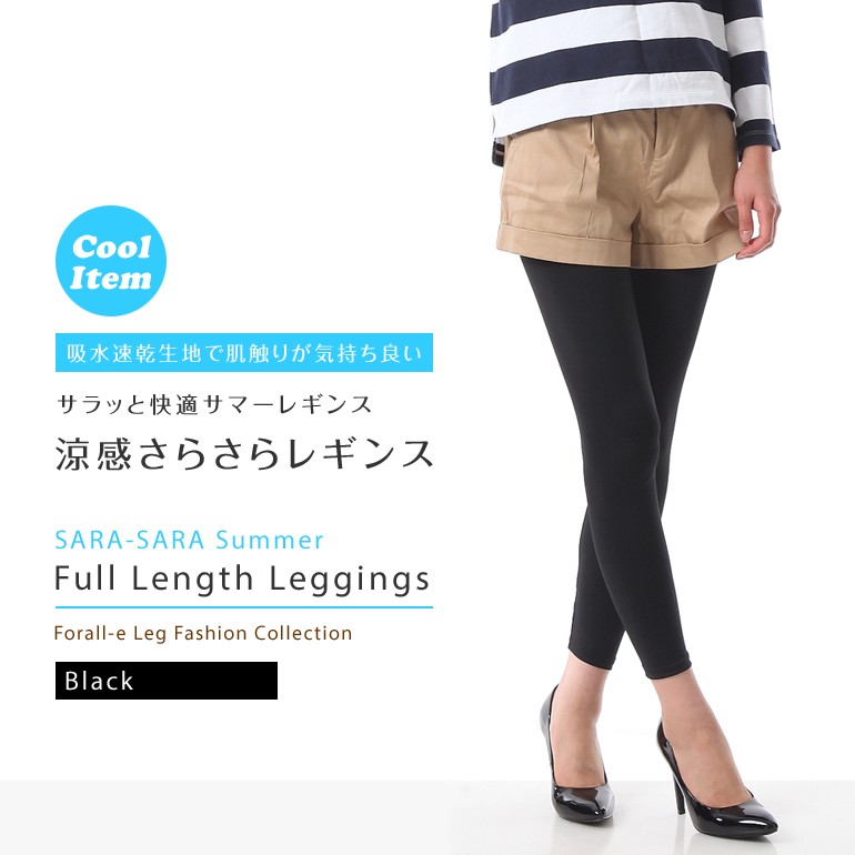 さらさら素材 10分丈レギンス スパッツ 涼感 快適 吸水速乾 紫外線対策 黒 無地 ブラック