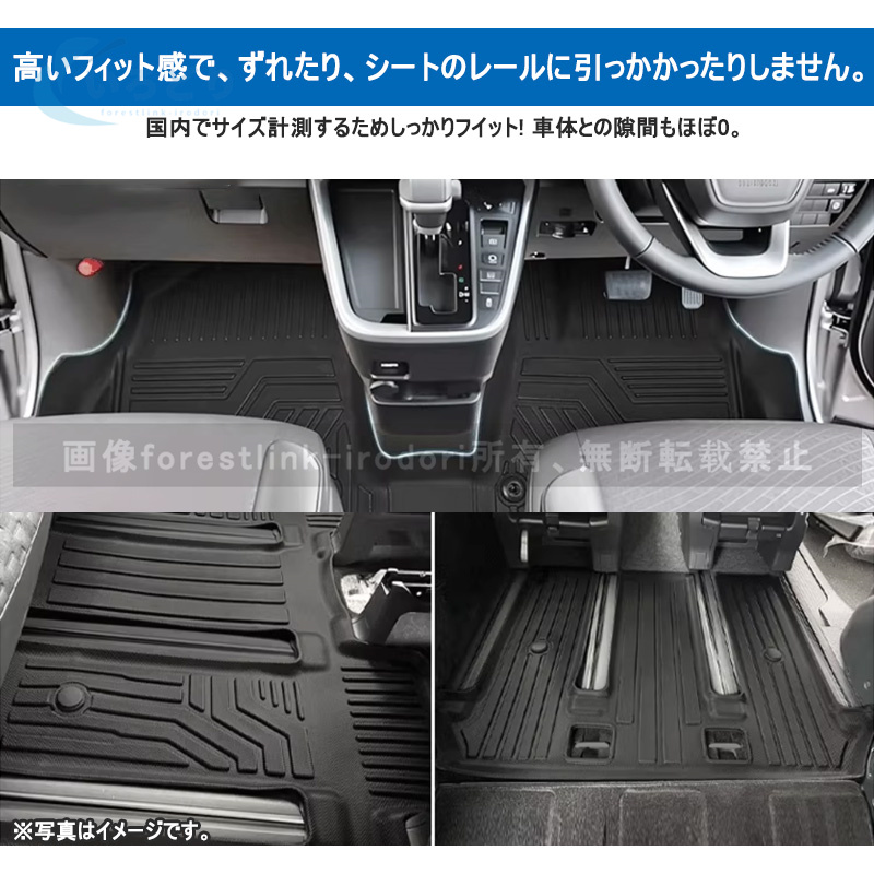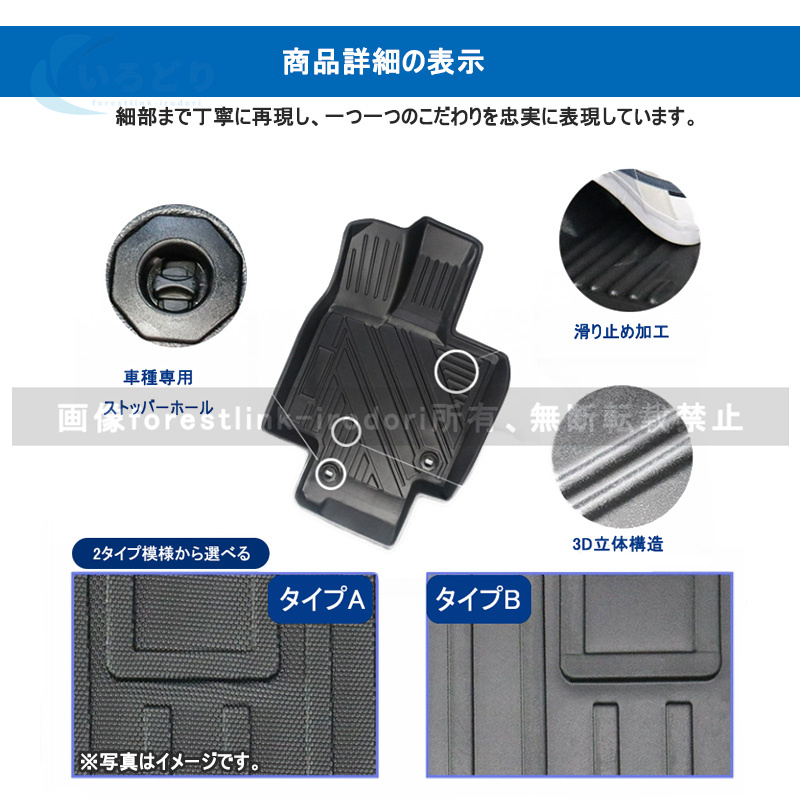 車種専用のこだわりデザイン3D立体成形だから、隙間なし、アクセルペダルとブレーキペダルに干渉しません。埃や泥も散らなく、傷をつかない耐摩擦でしっかりご愛車を守ります。