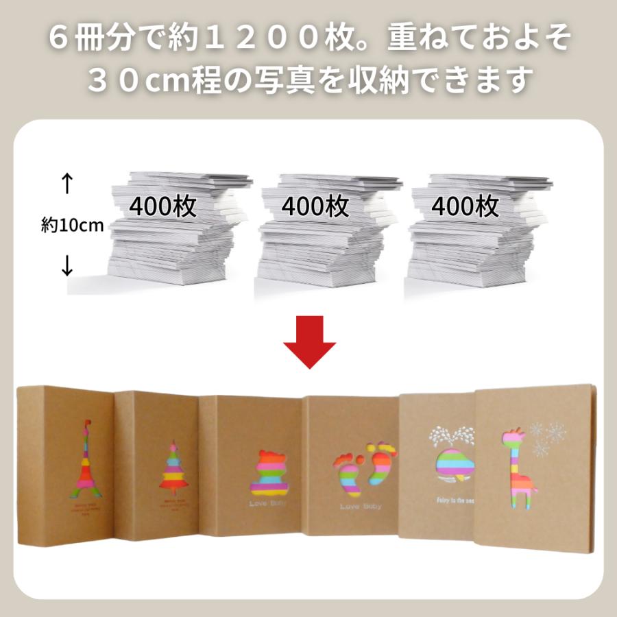 アルバム 6冊セット写真 L判サイズ 大容量 1200枚 1冊200枚収納 クラフト紙 フォトアルバム 軽量 カラフル
