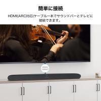 「商品情報」洗練されたスタイリッシュなデザインが部屋のどこに置いてもインテリアになれます。パワフルなサウンドを部屋に響き渡り、クリアなサウンドを全方位から包まれます。「主な仕様」【優れたサウンド体験をお手軽に】HDMI-CEC/ARCに対応しているため、HDMIケーブル1本で簡単にテレビをサウンドバーと接続できます。また、現在使用しているテレビのリモコンでサウンドバーの音量調整ができます。ワイドレンジスピーカーを通して、迫力のある音をコンパクトなボディから飛びます。