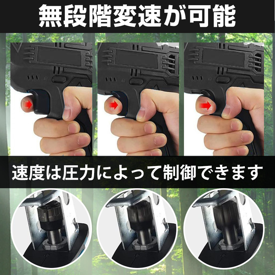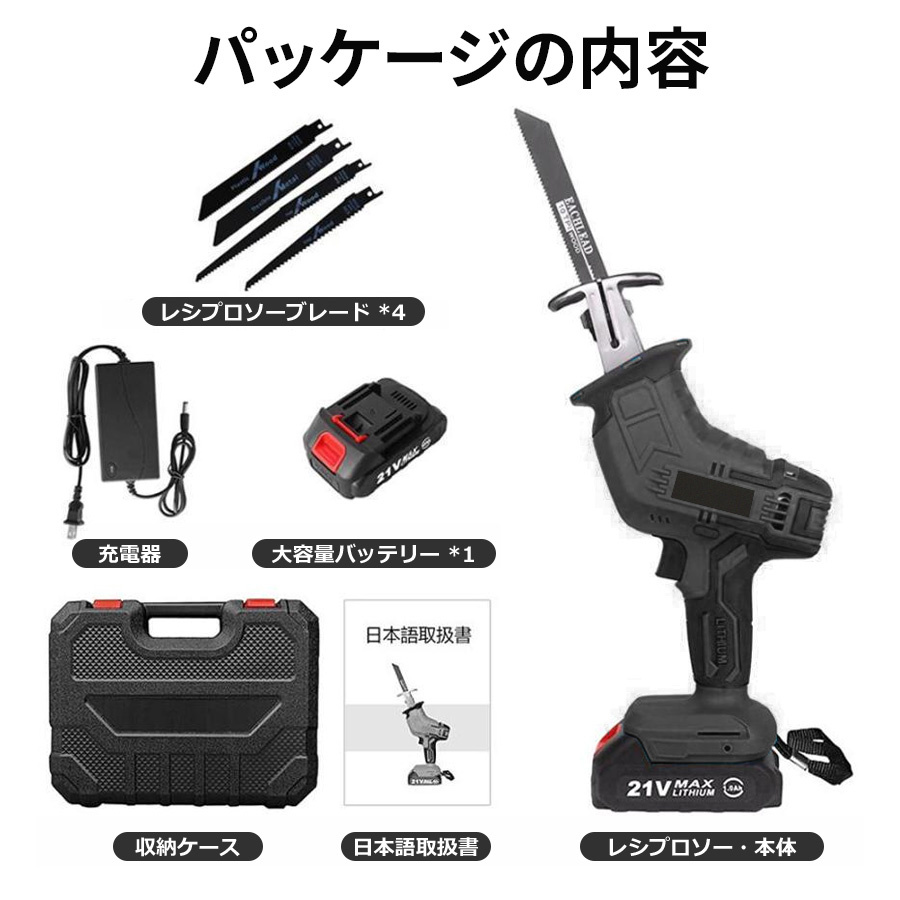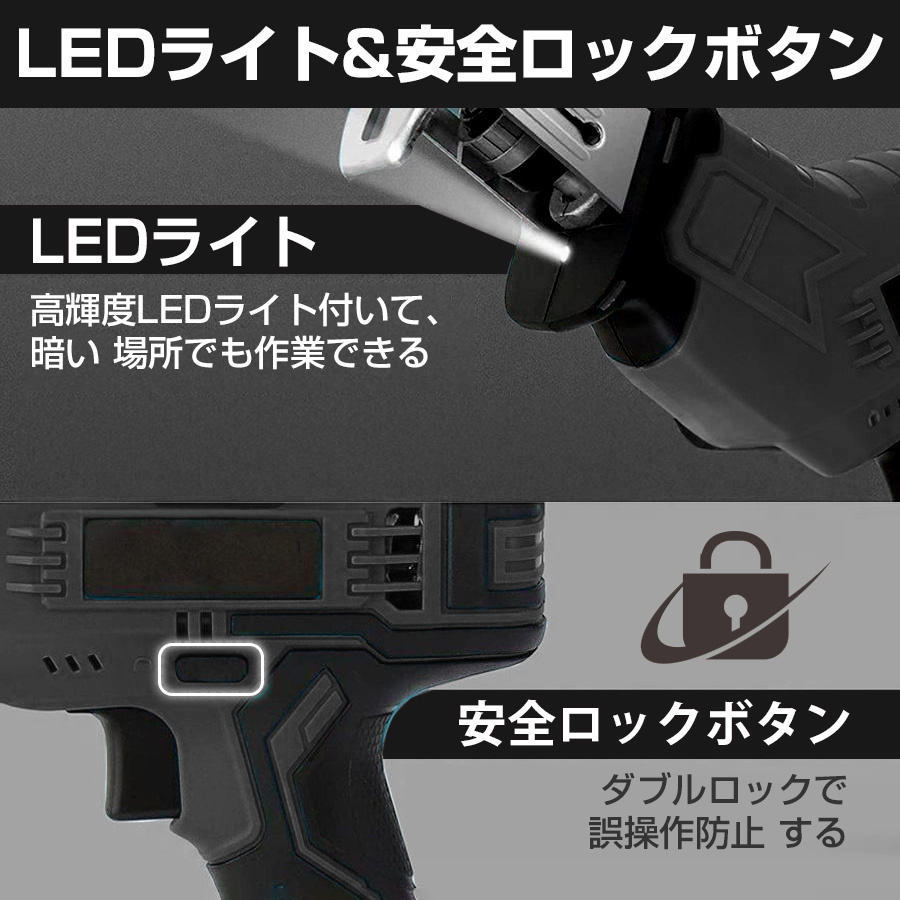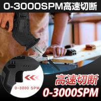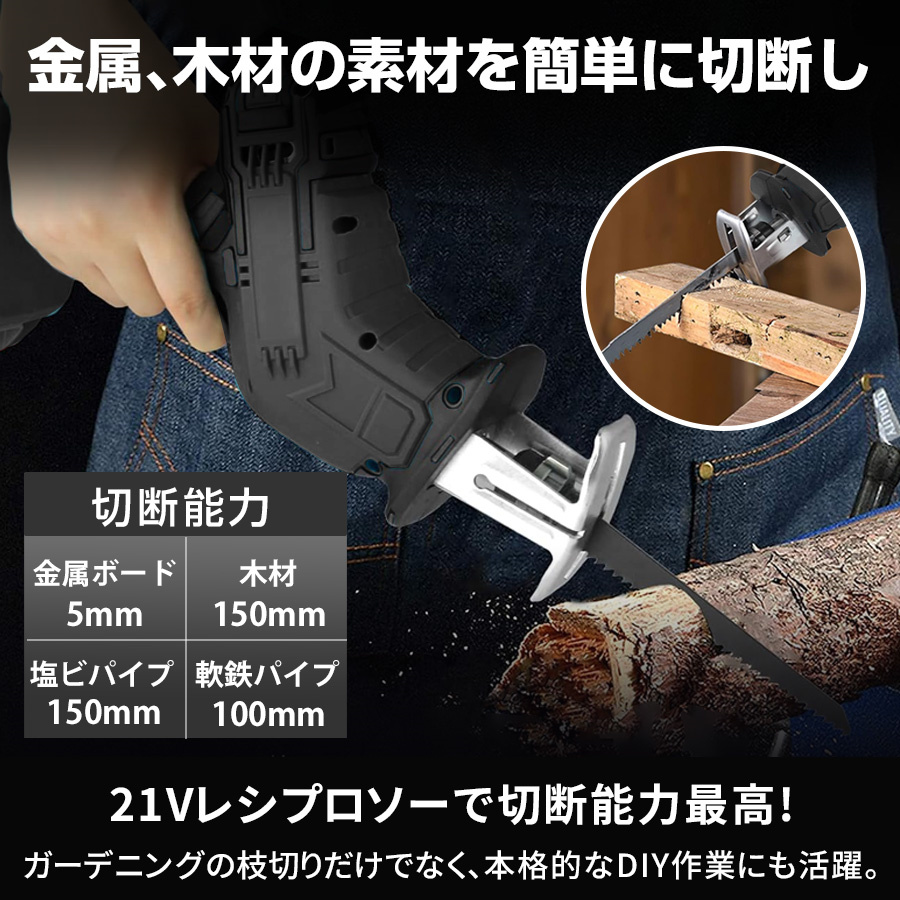 【21V高速切断可能】充電式レシプロソーのコードレス設計は非常に便利で、どこでも使用できます。3000RPM高速ストローク&無段変速機構、高速ストローク、従来品と比較して切断スピードが約20%アップしました。