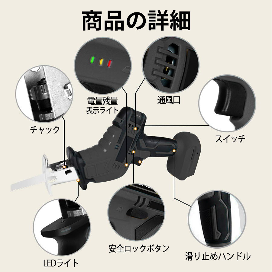 【注意】弊社は輸入・販売する商品の正規取扱店です。非正規品の流通が増えておりますのでお買い上げの際は充分にご注意ください。【高功率&;無段変速】切断能力:木材/10cm 塩ビパイプ/15cm 軟鉄パイプ/10cm 鉄材/2mm厚。3000min-1高速ストローク&無段変速機構、従来品と比較して切断スピードが約13%アップしました。
