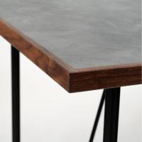 ブラウンの天板にはダークグレーの石目調シートを貼っており、天板の表面は傷や汚れに強いメラミン化粧繊維板を採用しています。