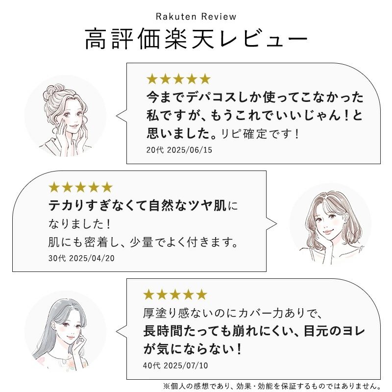 | 全成分表記 | 【有効成分】ナイアシンアミド、グリチルリチン酸ジカリウム 【その他成分】フランスカイガンショウ樹皮エキス、ヒアルロン酸ナトリウム(2)、水溶性コラーゲン液、ローズマリーエキス、加水分解ローヤルゼリータンパク液、アルテロモナス発酵エキス、キウイエキス、酵母エキス(3)、テトラ2−へキシルデカン酸アスコルビル、L−アスコルビン酸 2−グルコシド、3−O−エチルアスコルビン酸、加水分解シルク液、N−ステアロイルジヒドロスフィンゴシン、N−ステアロイルフィトスフィンゴシン、ヒドロキシステアリルフィトスフィンゴシン、コメヌカスフィンゴ糖脂質、グリシン、L−アラニン、L−セリン、L−バリン、L−イソロイシン、L−スレオニン、L−プロリン、L−フェニルアラニン、L−ヒスチジン、L−アルギニン、L−アスパラギン酸、L−ピロリドンカルボン酸、シア脂、DL−ピロリドンカルボン酸ナトリウム液、精製水、濃グリセリン、ジプロピレングリコール、1,3−ブチレングリコール、グリセリン脂肪酸エステル、2−オクチルドデカノール、グリセリンモノ2−エチルヘキシルエーテル、トリ2−エチルヘキサン酸グリセリル、テトラ2−エチルヘキサン酸ペンタエリトリット、デカメチルシクロペンタシロキサン、架橋型メチルポリシロキサン、メチルフェニルポリシロキサン、リンゴ酸ジイソステアリル、ジリノール酸ジ(フィトステリル/イソステアリル/セチル/ステアリル/ベヘニル)、酸化アルミニウム、水酸化アルミニウム、イソステアリン酸、ステアリン酸、微粒子酸化チタン、雲母チタン、ポリアクリル酸アルキル、硫酸バリウム、ヘキサメチレンジイソシアネート/トリメチロールヘキシルラクトン架橋ポリマー、タルク、酸化チタン、n−オクチルシリル化酸化チタン、n−オクチルシリル化黄酸化鉄、n−オクチルシリル化ベンガラ、n−オクチルシリル化黒酸化鉄、乳酸ナトリウム液、水酸化ナトリウム、無水ケイ酸、硫酸マグネシウム、トリメチルシロキシケイ酸、PEG−9ポリジメチルシロキシエチルジメチコン、ポリオキシエチレン・メチルポリシロキサン共重合体、ポリ(オキシエチレン・オキシプロピレン)メチルポリシロキサン共重合体、フェノキシエタノール |