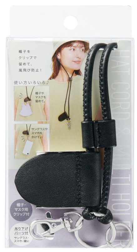 ハットコードにもなるマルチホルダー ブラック スマホストラップ 帽子クリップ ホルダー