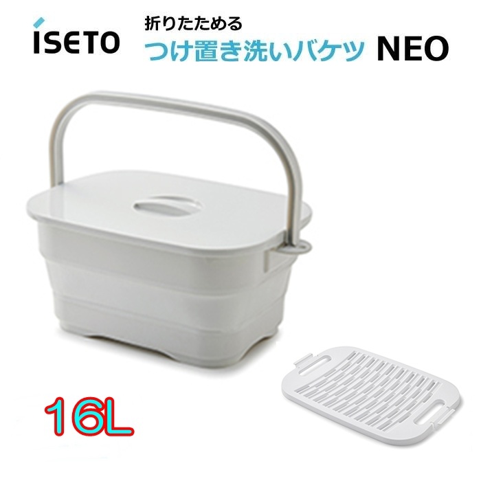 折りたためる つけ置き洗いバケツNEO グレー16L I-647 (伊勢藤 ISETO)