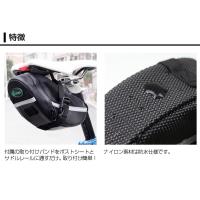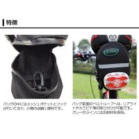 | 商品説明 | サドル下のデッドスペースを有効活用!ナイロン製防水サドルバッグです。 バッグはチャックで開閉。バッグ内にはメッシュポケットとフックが備わっているので、コインケース、パンク修理工具、救急道具等ちょっとした小物の収納にぴったり。 前面のベルトループへはリアライトやカラビナ等を取り付けることもできます。 ライトグレーのパイピングラインには反射材(リフレクター)を採用。夜間走行の安全面にも配慮した作りとなっています。 ロードバイク、マウンテンバイク等におすすめです。 |