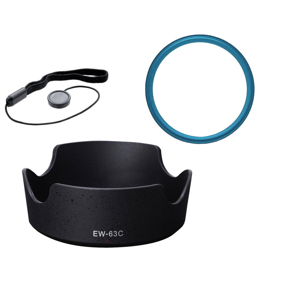 NinoLite EW-63C 互換レンズフード と UVフィルター 58mm 青とカメラレンズキャップ紛失防止ホルダーのセットです。