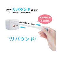 便利な収納: 約63cmの急速充電ケーブルが内蔵され、伸縮してコンパクトに収納可能。