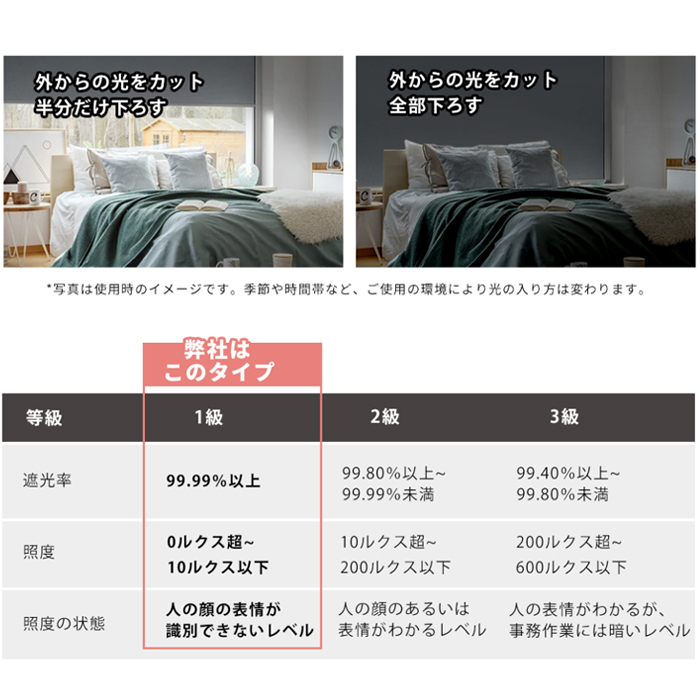 【快適な使い心地】1級遮光機能より日光をしっかりとシャットアウトしてくれます。UVカット効果もあるため、紫外線による床壁、フローリングや家具の劣化を防げます。また、夏は太陽熱によって室内温度の上昇を抑え、冬は冷気を遮ってくれるので、遮熱保温効果を持ち、季節を問わず快適に過ごせます。冷暖房の効果もアップ するため省エネ効果が期待できます。