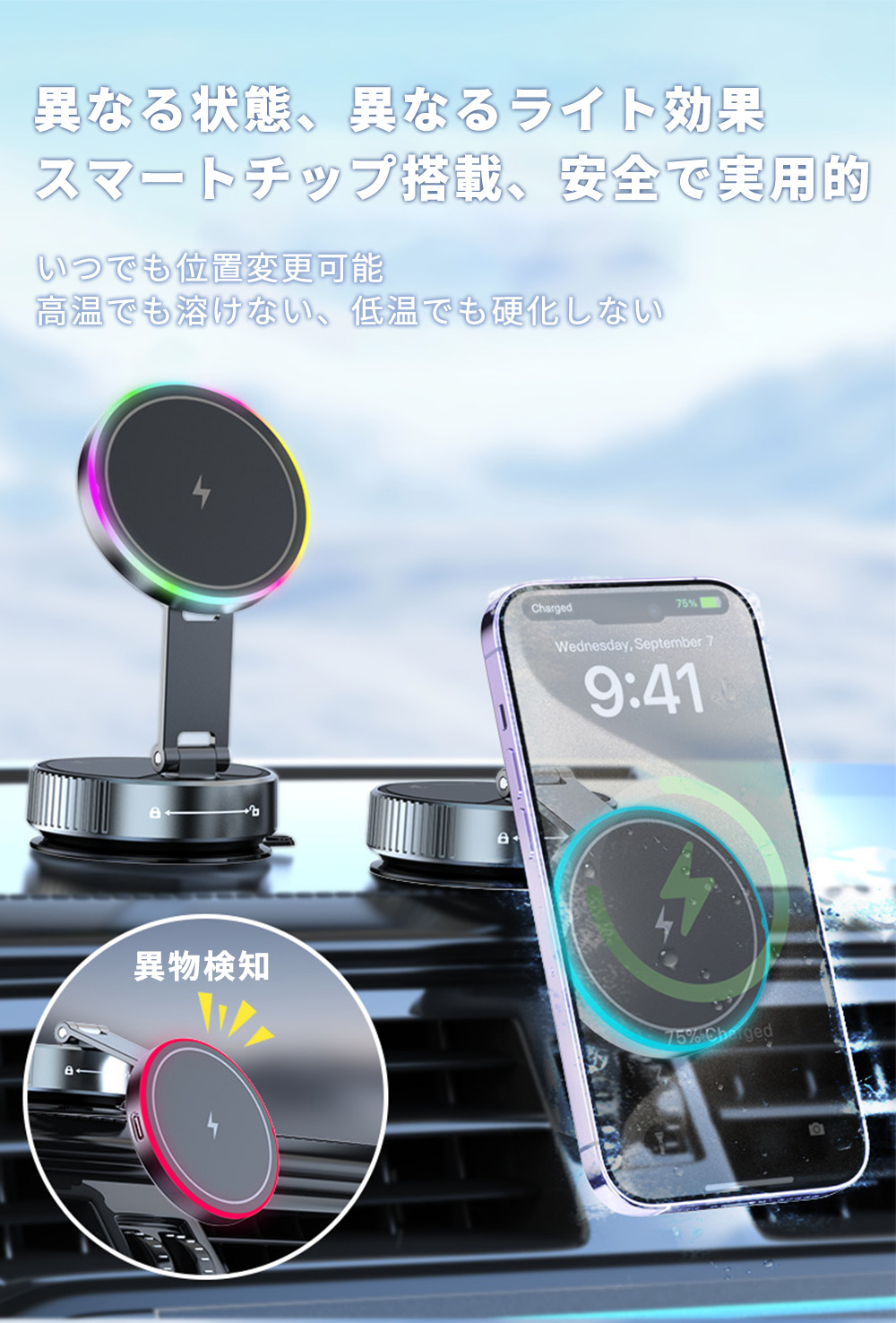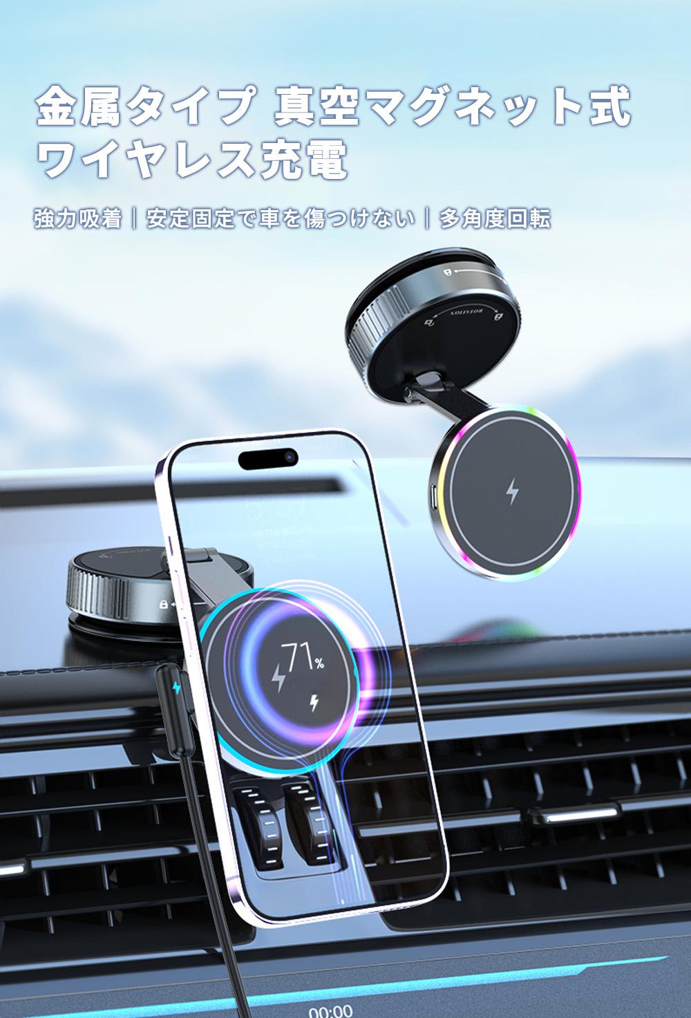 【運転中もパワフル充電!】 スマホホルダー 車 マグネット ワイヤレス充電器 強力吸着 多角度調整 iphone17 車載ホルダー 全車種対応 取り付け簡単 Magsafe
