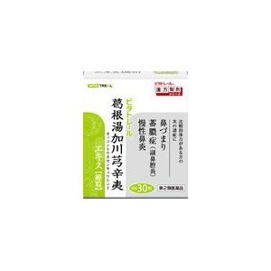 本品3包(6.0g)中カッコン 2.0g、マオウ 2.0g、タイソウ 1.5g、ケイヒ 1.0g、シャクヤク 1.0g、カンゾウ 1.0g、ショウキョウ0.5g、センキュウ 1.5g、シンイ 1.5g上記より製したj根湯加センキュウ辛夷エキス(1/2量)4.0g(乾燥物換算で約2.0gに相当)を含有する細粒剤です。添加物としてメタケイ酸アルミン酸Mg、ヒプロメロース、乳糖、トウモロコシデンプン、香料を含有します。