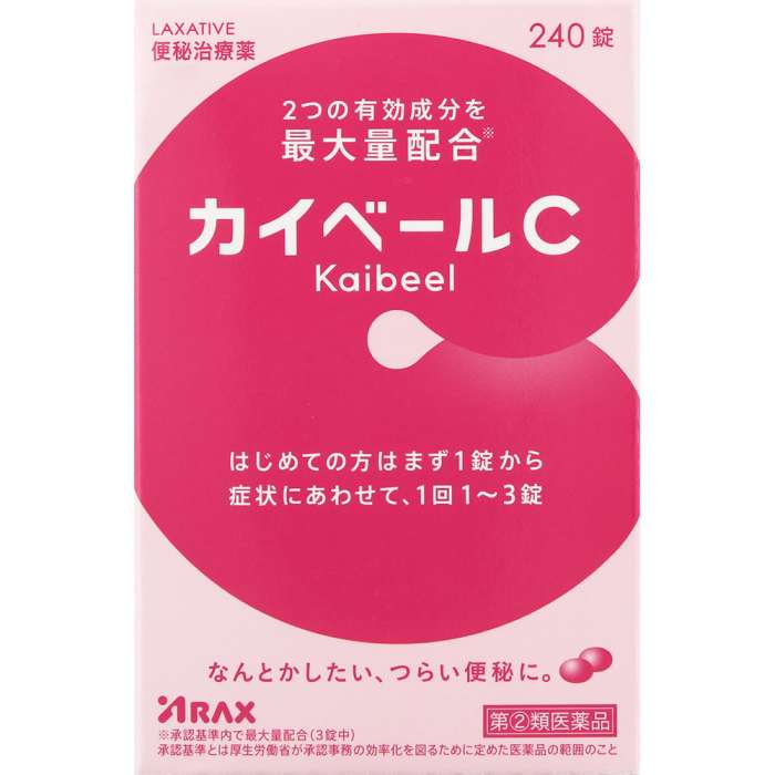 カイベールCは、ビサコジルとセンノサイドという2つの有効成分を承認基準内最大量配合※した便秘薬です。