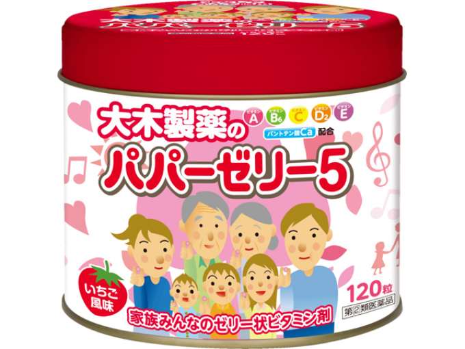 パパーゼリー5は、ビタミンA、B6、C、D2、Eとパントテン酸カルシウムを配合した、