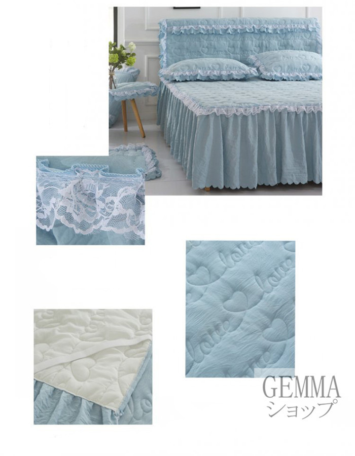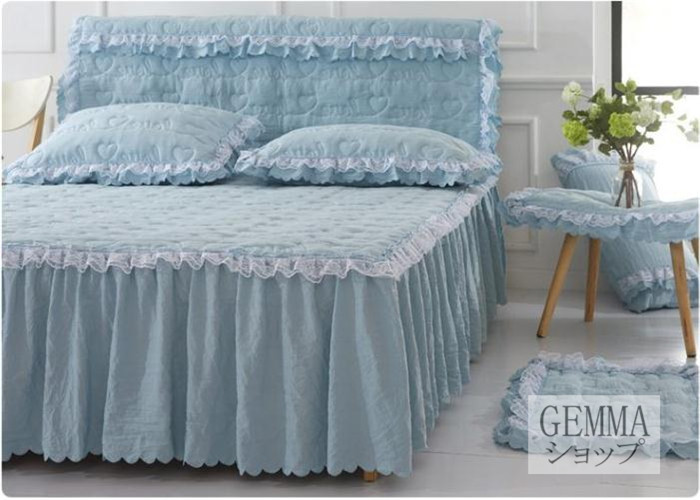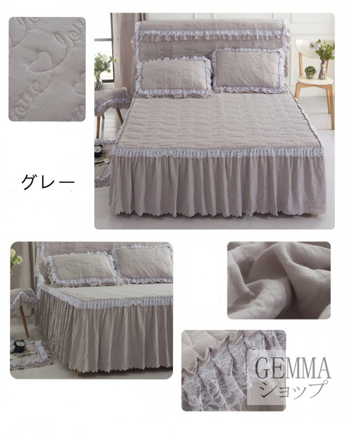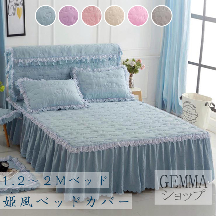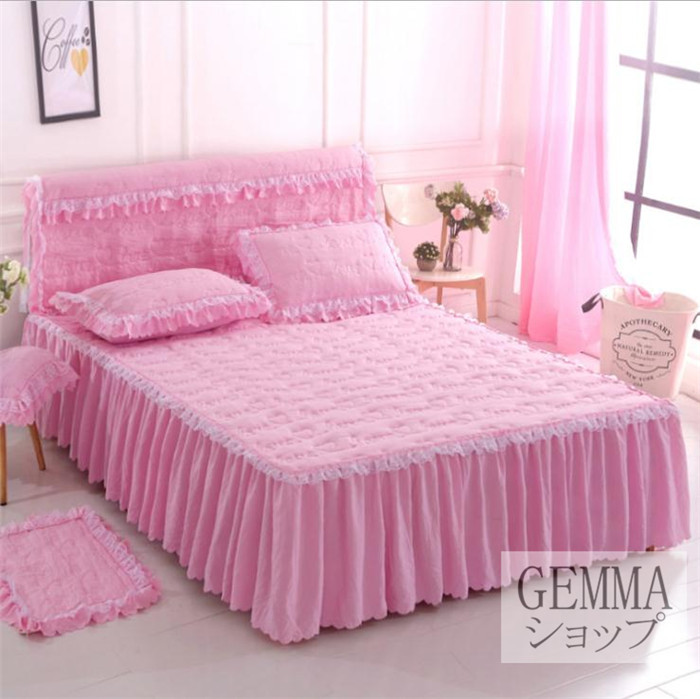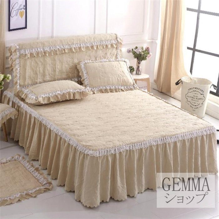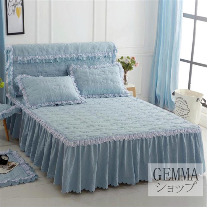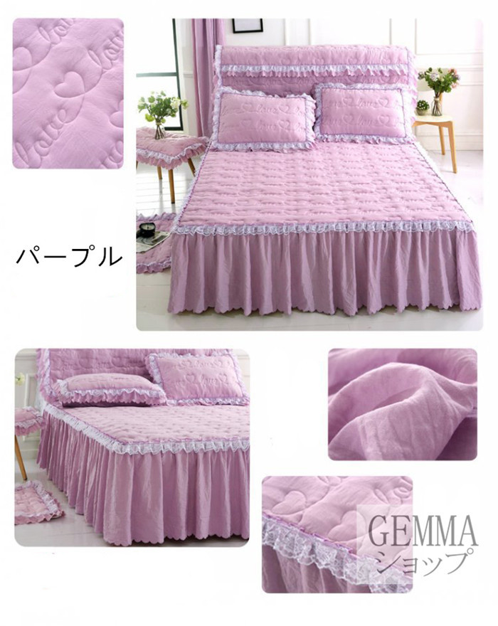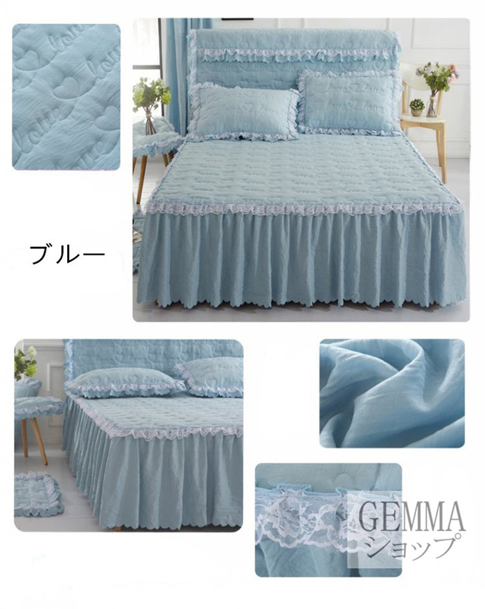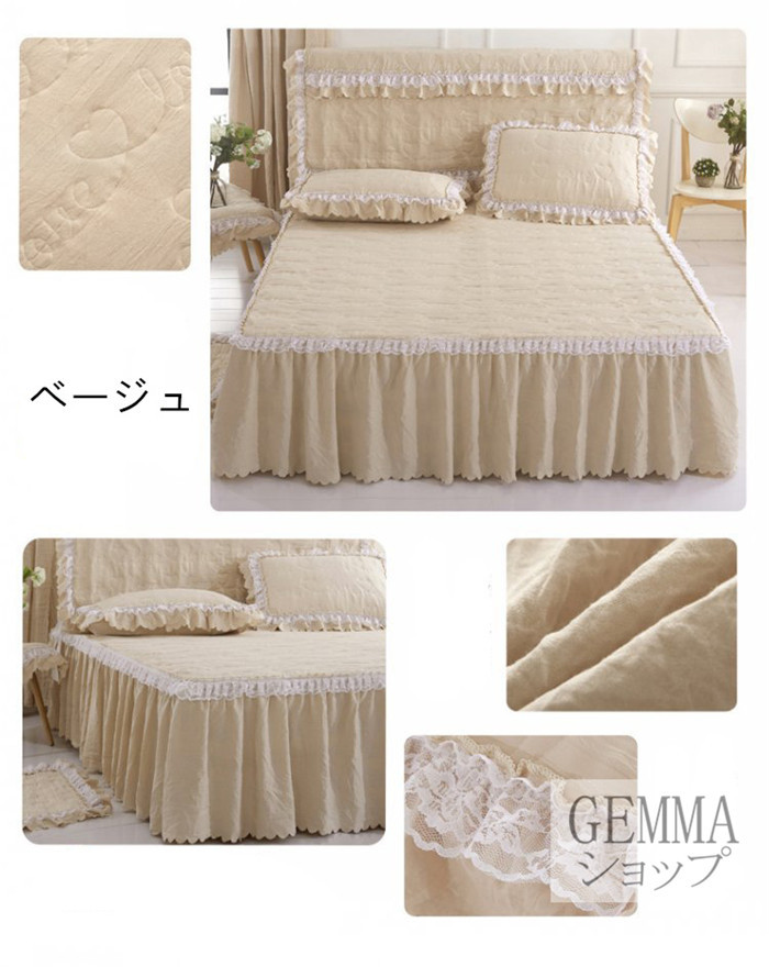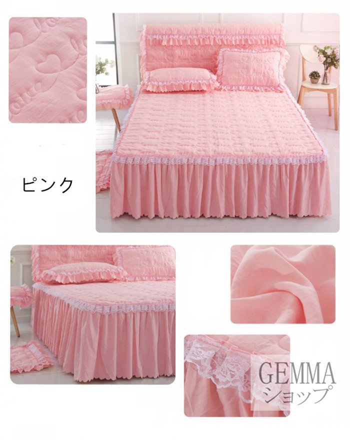 ベッドカバー ベッドシーツ スカートシーツ シングル セミダブル ダブル 姫風 可愛い レース 中綿入り 秋冬用 厚地 吸湿 通気 単品販売