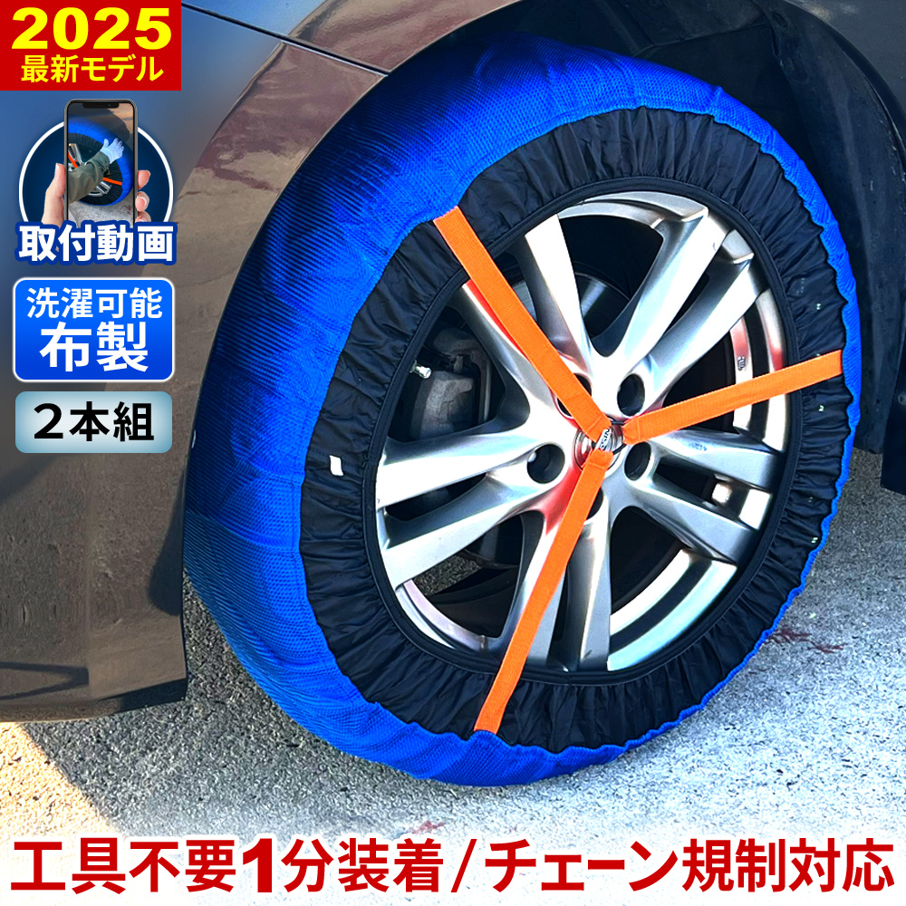工具&ジャッキアップ不要の簡単装着 布製タイヤチェーン【スノーソック】 【チェーン規制 対応製品】 18年12月よりタイヤの「チェーン規制」制度がスタートし、規制区間でのチェーンの装着が義務化されました。本製品は規制時も問題なく使用いただけます。 【ジャッキアップ&工具不要で手軽】 取り付け時にジャッキ類や専用工具などを使用する必要がないため、とてもお手軽です。本製品を車に常備しておくだけで、突然の積雪にもすぐに装着して対処することができます。 【わずか5分で簡単&手早く装着できる】 わずか5分、たった4ステップで簡単&手早く装着できます。手順もシンプルなので初めての人や女性の方も安心です。スマホで見れる取付動画あり! 【破れにくい高強度素材だから安全】 タイヤ接地面の素材に、耐摩耗性や耐裂性にすぐれた高強度ポリエステルを採用。既製品に比べて極厚で段違いに耐久性があり、走行時に非常に破れにくく安心安全です。 【走行中に脱げない自動調整昨日】 スノーソック本体に十文字に張られたオレンジ色のバンドが、カバー部分をしっかりと締め付けて振動を受けても外れないよう固定しつつ、走行時にはタイヤの回転を利用して楕円形のゴムの引っ張り力を均一にしようと働きかけます。これにより、結果的にゴムが自動で真円に近づこうとするので、走行中にスノーソックが脱げてしまう事がない安定した走行を実現します。 【布製だから洗濯機で丸洗い可能】 布製だから洗濯機で丸洗いすることができるため、お手入れがとても簡単です。 【サマータイヤ&スノータイヤ両対応】 サマータイヤ、スノータイヤどちらにも装着してお使いいただけるのでコスパ抜群です。 【軽くて小さいから携帯・保管しやすい】 必要十分な厚さ&金属部品を使用していない布製のため、重量わずか1.1kgと非常に軽量な本製品。専用パッケージにしまうとサイズもご覧の通りとてもコンパクトになり、持ち運びがしやすいのはもちろん、トランクに積む際やオフシーズンの片付け時も置き場所に困らずに済むなど、なにかと便利です。 |