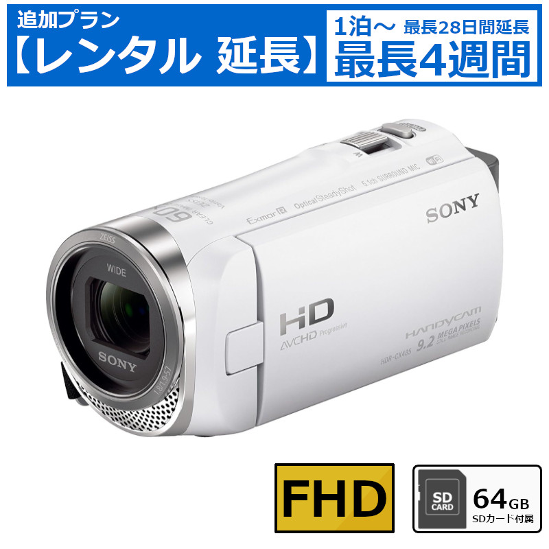 レンタル延長 延長1泊〜4週間 ビデオカメラ SONY HDR-CX485 フルHDビデオカメラ 64GB SDカードセット 手ブレ補正