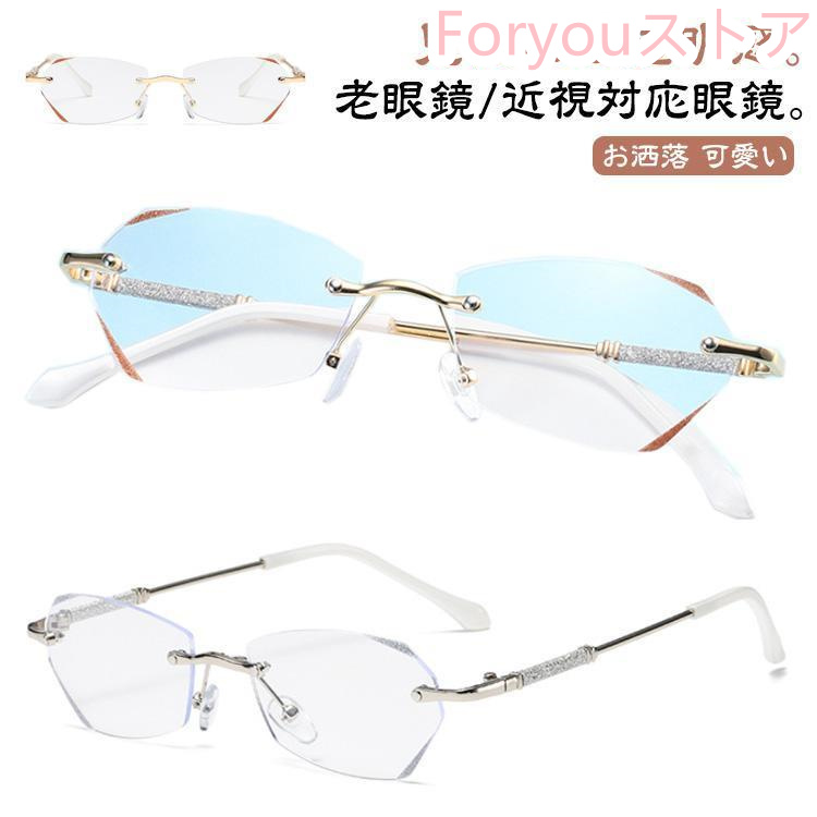 度あり 近視対応 ブルーライトカット メガネ 度付き リーディンググラス おしゃれ ふちなし フチなし かわいい PCメガネ 上品 レディース 老眼鏡