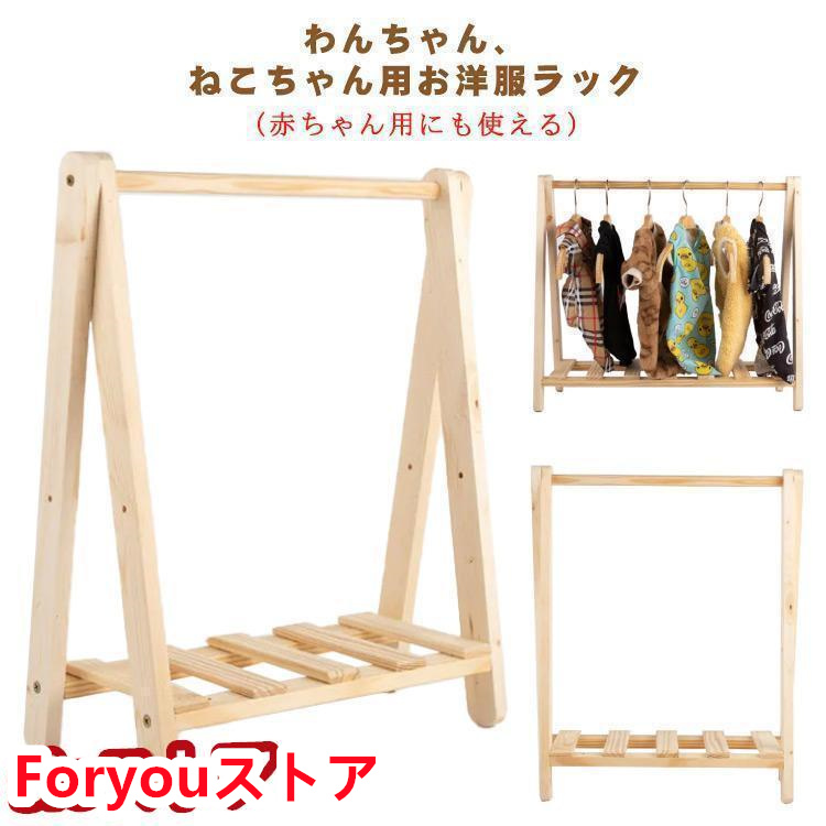 ペット用 ハンガーラック 犬 猫 ワードローブ お洋服ラック 木製 2段 棚付き 中型犬 小型犬 洋服 猫服 犬服 収納 片付け ペット服 ポールハン