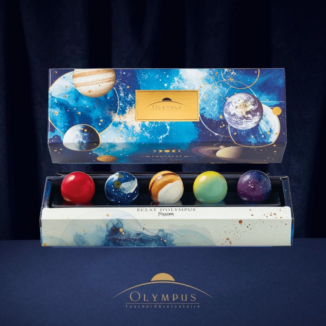 まるで惑星をそのままショコラにしたような球体ショコラ。ギリシャ神話に込められたオリンポスの神々を司る惑星たちのアソート。