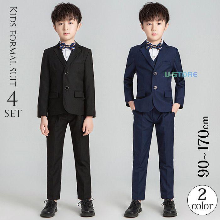 フォーマル 入学式 スーツ 4点セット 入学式 子供服 男の子 卒業式 スーツ 男の子 男の子 スーツ 150 ネクタイ色選び可能 キッズ ジュニア