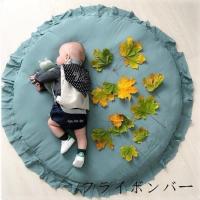 ベビーマットサニーマット低反発洗えるフリル無地北欧風ラグ丸型円形オールシーズンリビングお昼寝マットリビング
