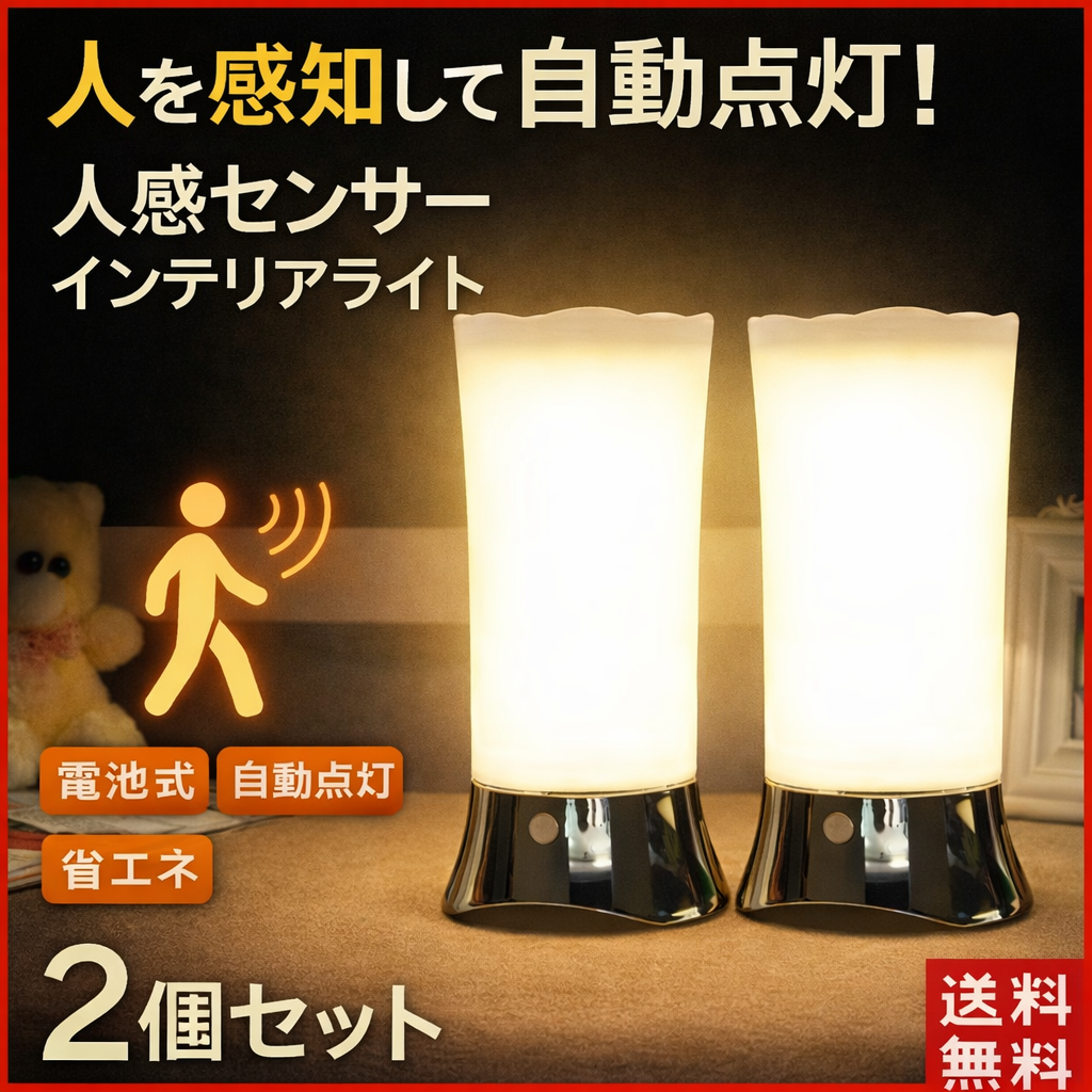 間接照明 センサーライト 屋内 おしゃれ インテリア LED フットライト 人感センサー おしゃれ 電池式 明るい 室内 玄関 寝室 廊下 階段 ナイトライト 2個セット