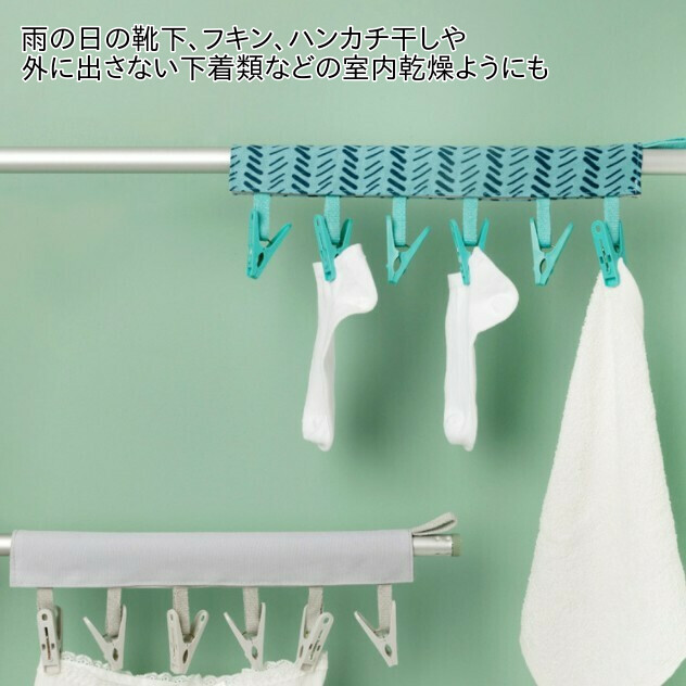 ・本体1個に6個の洗濯バサミがついておりますため、下着、靴下、タオルなど、小物の物干しに最適です。