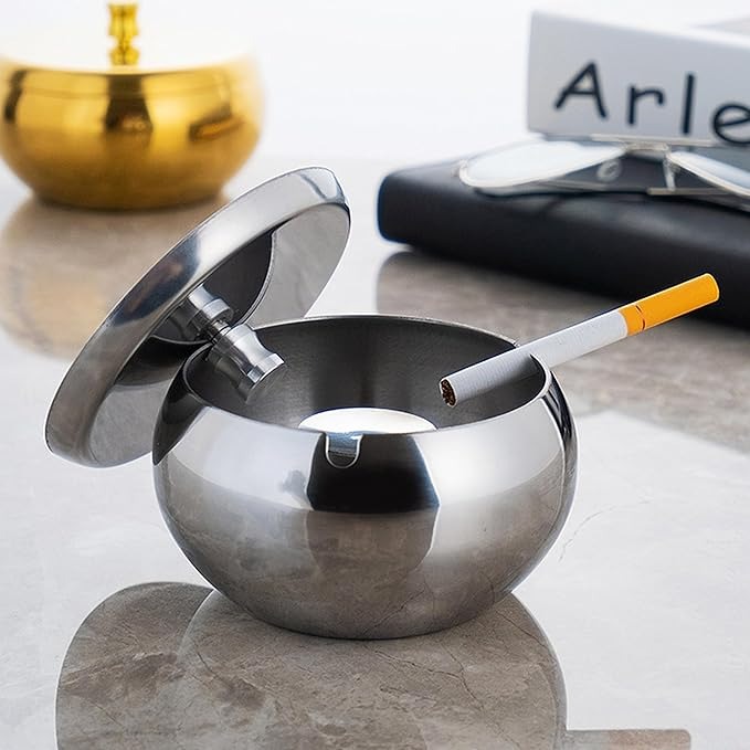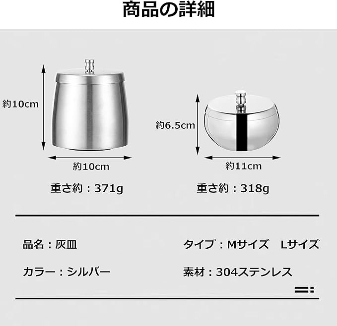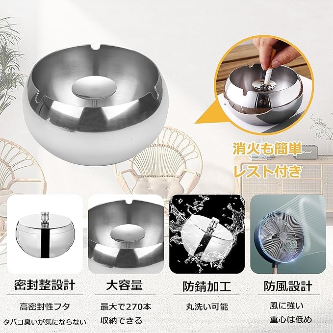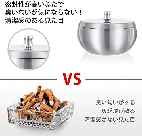 灰皿 おしゃれ 蓋付き 大容量 スタイリッシュ インテリア ふた付き 車 携帯 ステンレス 匂い しっかり 遮断 卓上 ふた付き灰皿 蓋つき灰皿 車内灰皿 2個セット