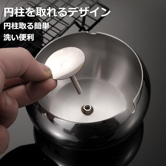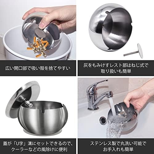 ・ステンレス製なのでお手入れが簡単で、フタがついていても本体と分割可能なので、洗いやすく、タバコの煙やニオイを遮断できます。ちなみに、灰皿内部の中央のレストを簡単に取り外せ、お手入れがとても簡単です。