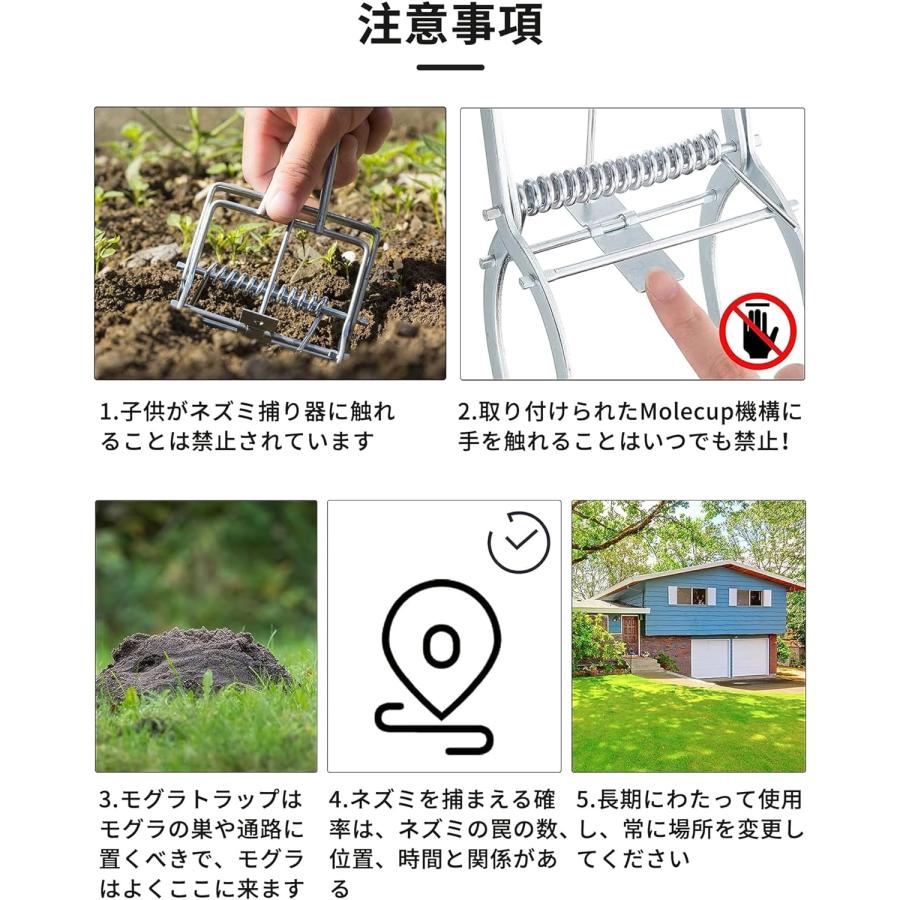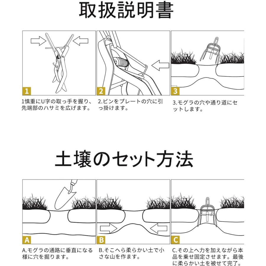 モグラ捕獲器 2個セット モグラ撃退 捕獲トラップ ネズミ 捕獲器 小動物 駆除 罠 トラップ 害獣対策 庭 畑 駆除グッズ