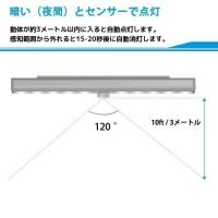 ・人感センサー搭載のLEDライトです。暗い場所に人が近づくと自動で点灯し、玄関廊下階段クローゼット物置などの足元をしっかり照らします。