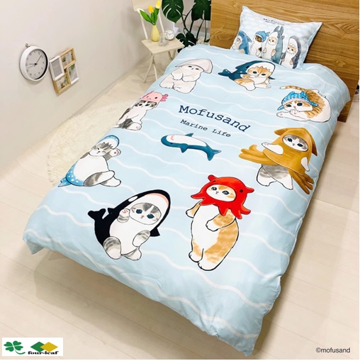 モフサンド 布団カバー 2点セット 掛布団カバー1枚 枕カバー1枚 シングルロングサイズ 布団カバーセット サメにゃん モリシタ 沖縄不可