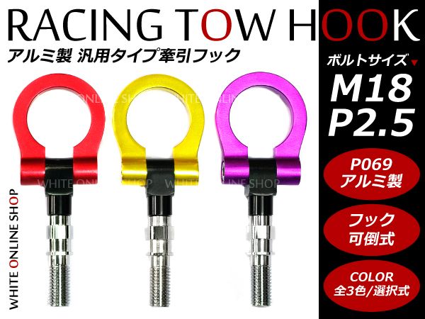 | 【商品説明】 汎用牽引フック・トーフック 強度確保を実現した牽引フックです。 「国産」「外国」でサイズが違います。 クルマによってもサイズが異なりますので、あらかじめご確認のうえご購入お願いいたします。 サイズと干渉するところがなければ、フロント、リアにお使いいただけます。 |