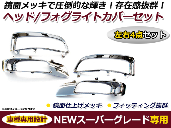 | 【商品説明】 三菱ふそうNEWスーパーグレート用 メッキヘッドライトカバーとメッキフォグライトカバー左右4点セット ヘッドライトとフォグライト周りのメッキカバーです。 取り付ける事により、ライト周りが激変します。 オールメッキなので、高級感と重量感がUPします! |