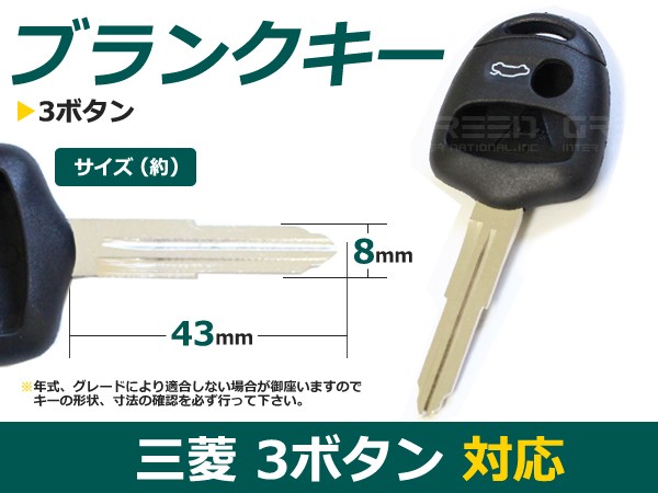 | 【適合車種】 ・メーカー:三菱 ・車種:ekワゴン ・規格: ・ブレード部長さ:43mm ・ブレード部幅:8mm ・ボタン位置:表面 ・ボタン数:3 ・鍵溝:右溝 |