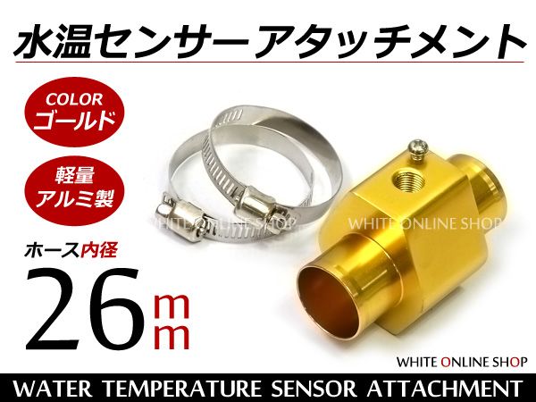 | 【商品説明】 水温計センサーアタッチメントです。 アルマイト表面処理により非常にキレイに仕上がっております。 26mm/28mm/34mm/36mmのサイズも取り扱っております。 輸入商品のため、小傷がある場合もございます。 |
