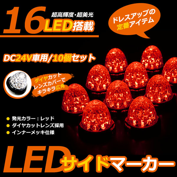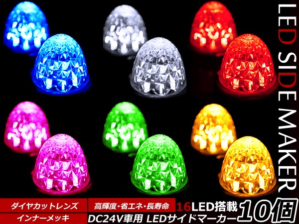 | 【商品説明】 24v専用 クリスタルレンズ LEDサイドマーカー 10個入り 24V専用品なのでトラックにお勧め! 超高輝度LEDを16個も使用したLEDバスマーカーが登場! 16個のLEDで明るさUP!新型リフレクター採用で拡散性UP! 全色、4面カットクリアプラスチックレンズ採用 ダイヤモンドカットレンズでキラキラ広角! |